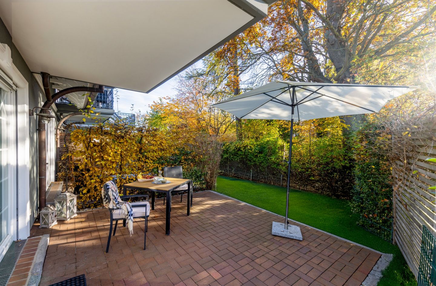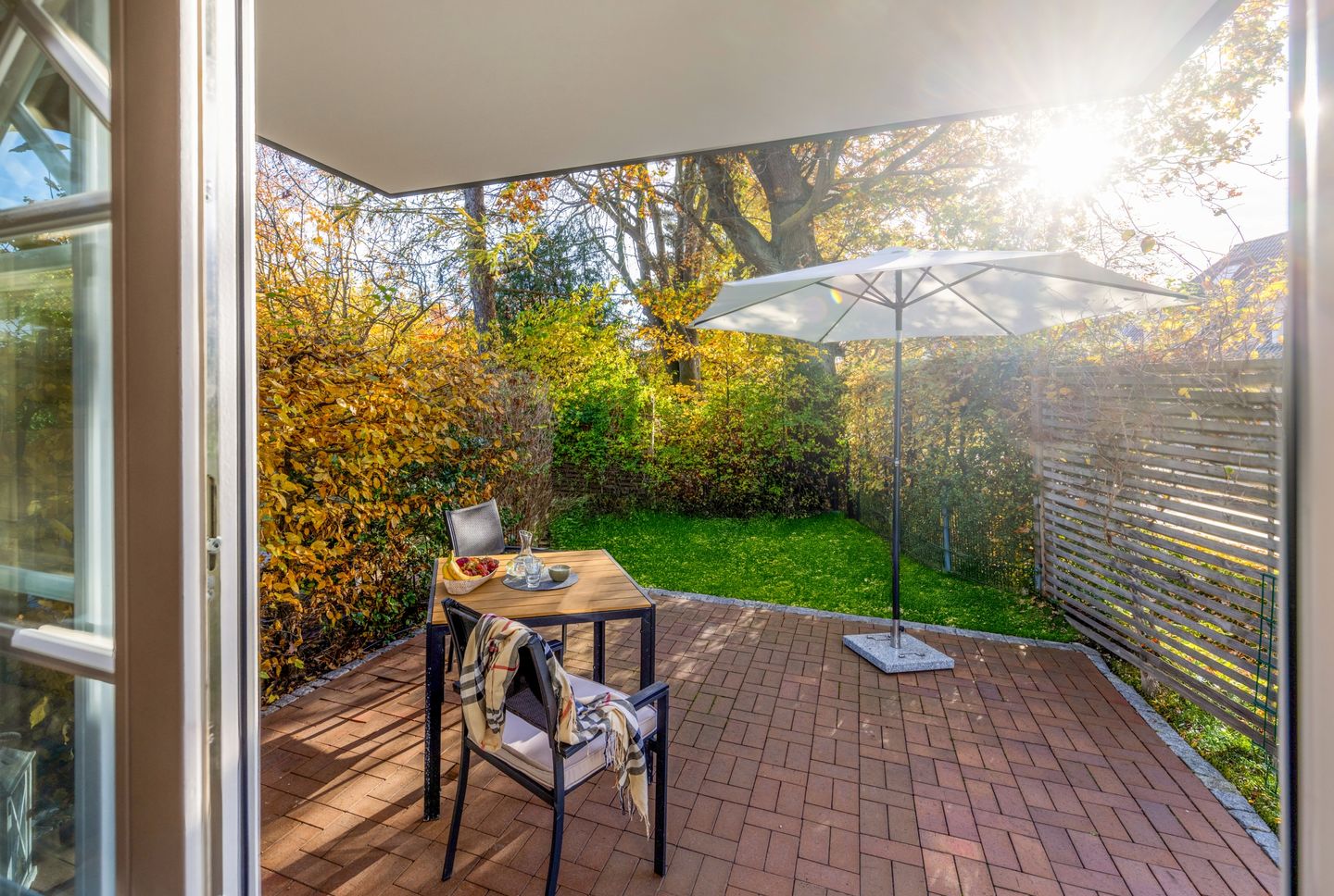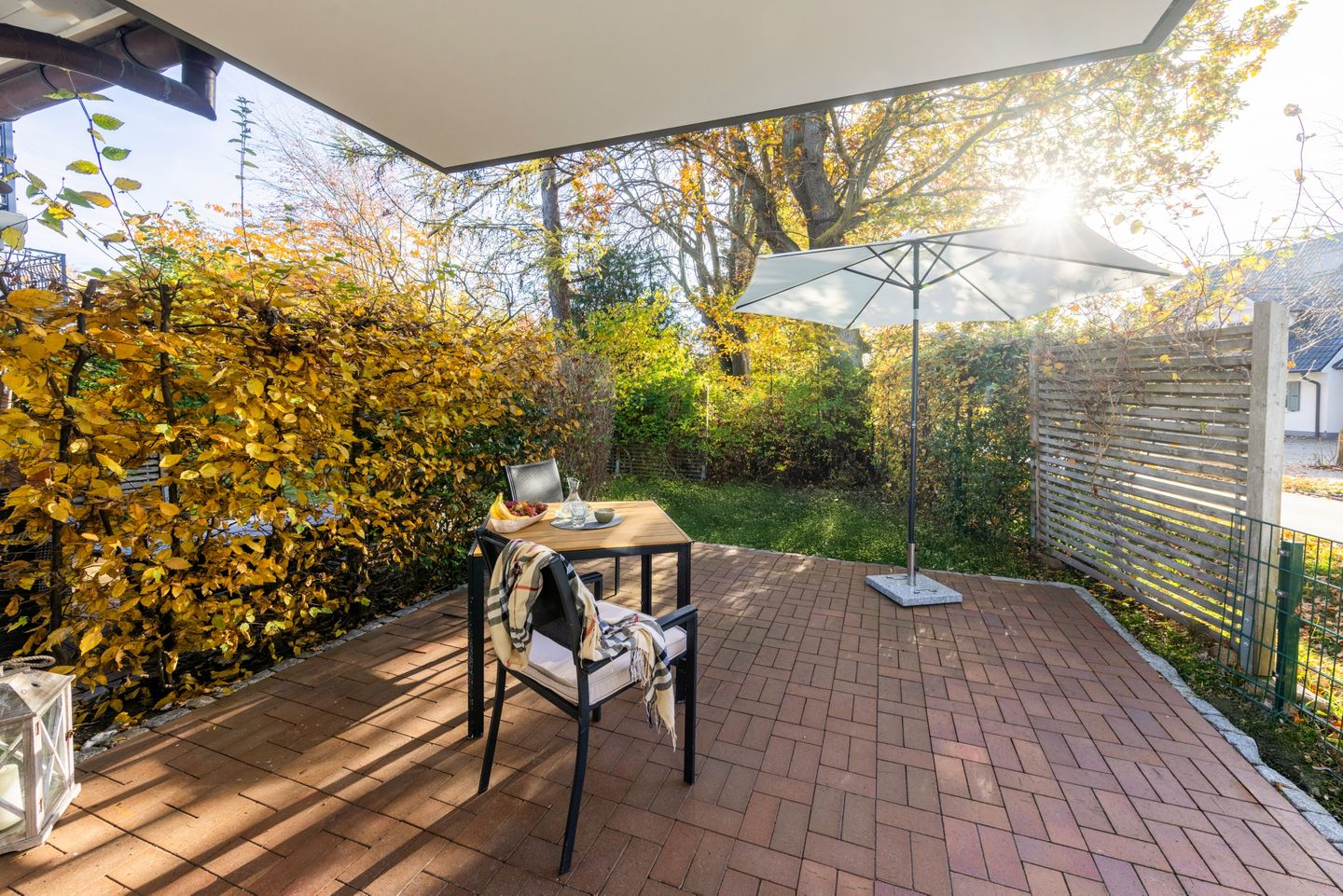 Auf der überdachten Terrasse können Sie den Ausblick in den gepflegten Garten genießen. Gartenmöbel, Sonnenliegen, Liegewiese und ein Sonnenschirm stehen für entspannte Stunden bereit – perfekt, um nach Aktivitäten im Freien zu relaxen. Für das sichere Abstellen Ihres Fahrzeugs befindet sich ein eigener Parkplatz direkt am Haus; eine eBike-Ladestation ist ebenfalls vorhanden.