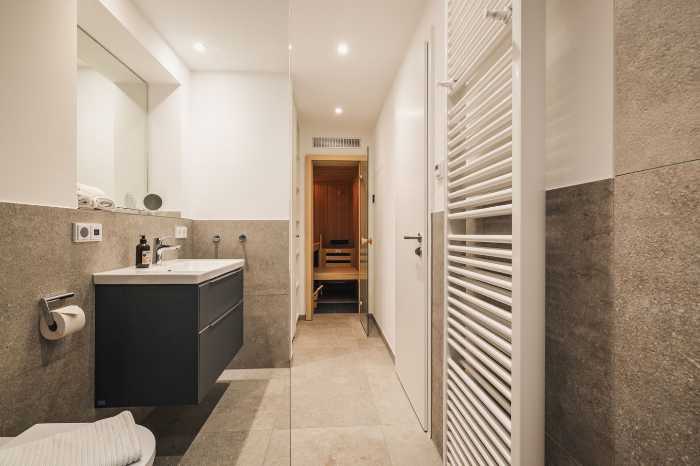 Besonderen Komfort bieten die 2 Badezimmer mit jeweils bodengleicher Dusche, WC, Waschbecken, Spiegel, Kosmetikspiegel und Haartrockner. Für entspannte Auszeiten steht Ihnen zudem eine Sauna zur Eigennutzung zur Verfügung. Fußbodenheizung und Zentralheizung schaffen zu jeder Jahreszeit ein behagliches Wohnklima. Parkett in Wohn- und Schlafbereich unterstreicht den gepflegten, hochwertigen Charakter der Unterkunft. Die Wohnung ist als Nichtraucherunterkunft ausgewiesen und allergikergeeignet beziehungsweise allergikerfreundlich.