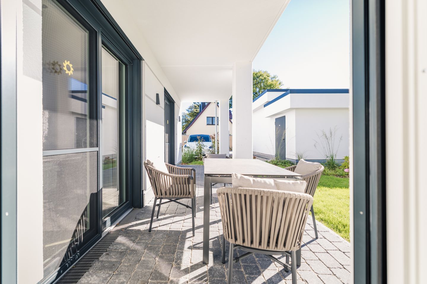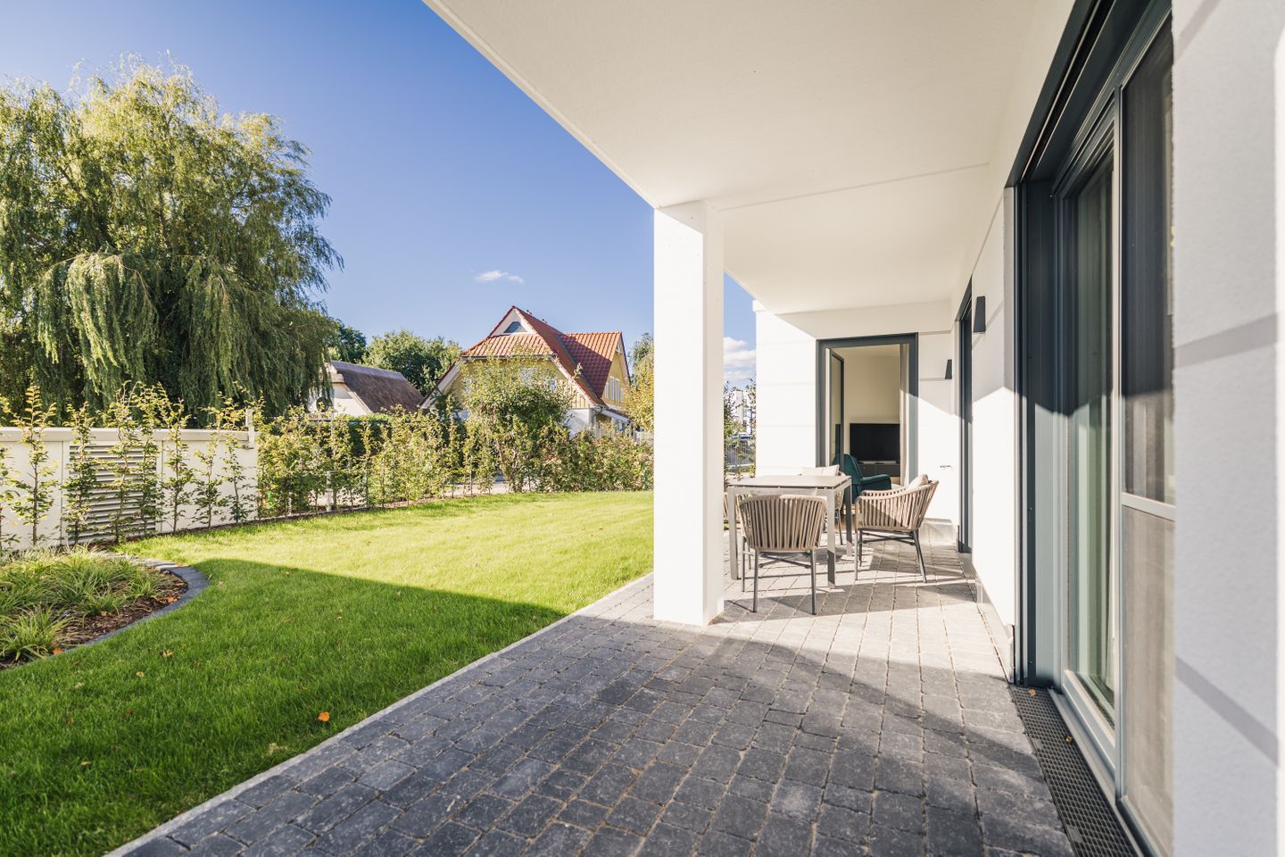 Die Ferienunterkunft Strandvilla Zingst- AP 05 befindet sich im Parterre eines 2025 erbauten Hauses am Grünen Weg 7 in Zingst und bietet auf 76 m² komfortable Voraussetzungen für bis zu 4 Personen. Die freistehende Strandvilla liegt in erster Reihe am Strand, nur 100 Meter vom Sandstrand und vom Meer entfernt. Wenn Sie eine Unterkunft in unmittelbarer Nähe zur Ostsee suchen, profitieren Sie hier von einer besonders attraktiven Lage am Meer, kombiniert mit kurzen Wegen zu Restaurants in 200 Metern und Einkaufsmöglichkeiten in 750 Metern Entfernung.