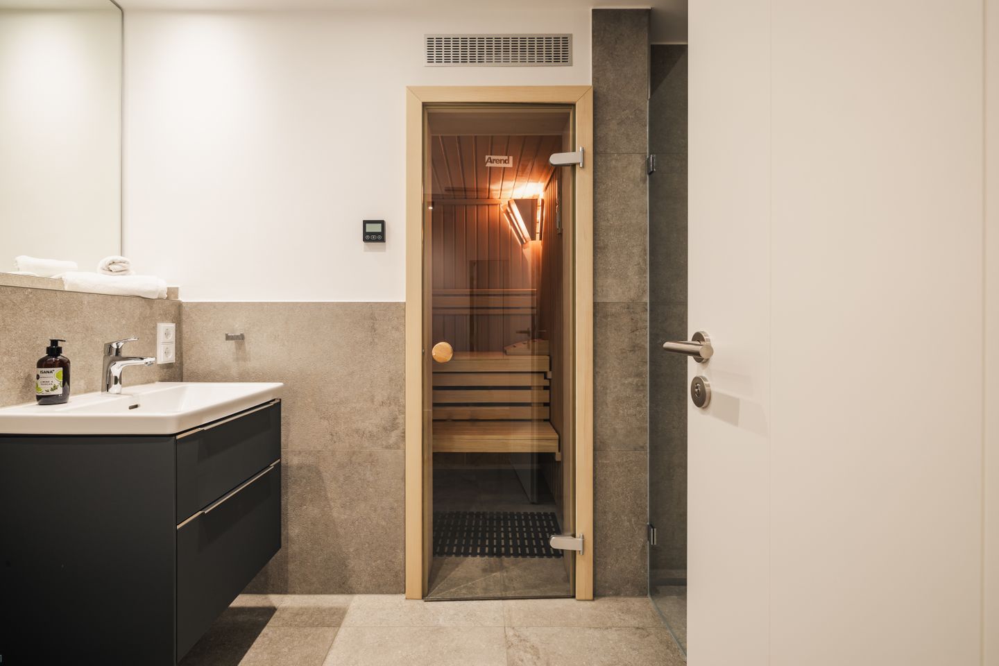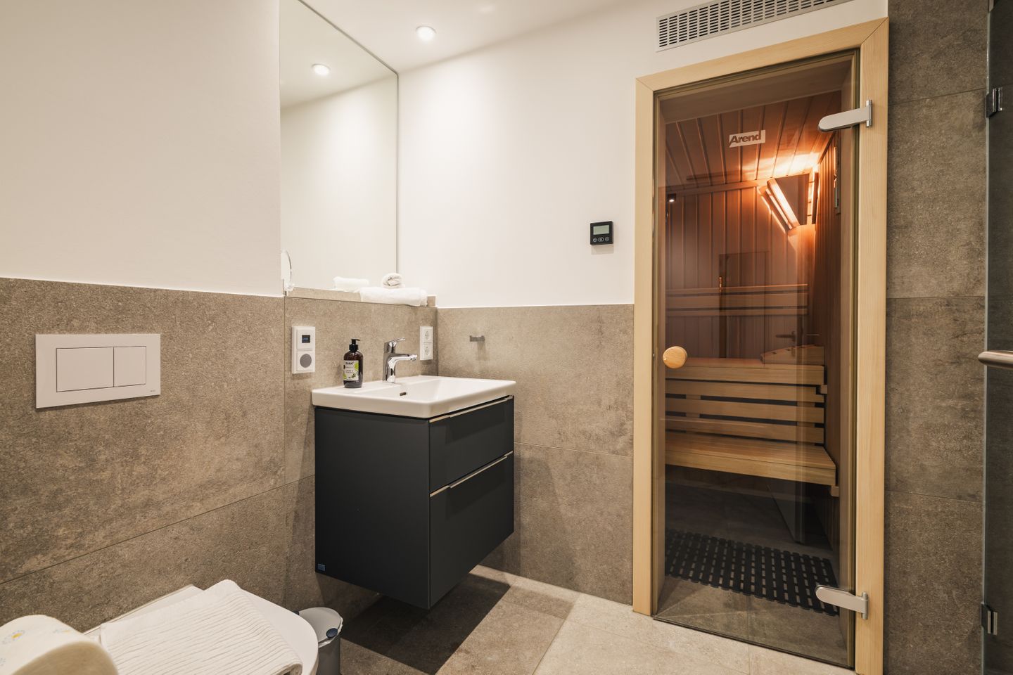 Der Wohnbereich verfügt über eine Sofaecke mit Sofa und Sessel, Esstisch und zwei TVs mit Kabelanschluss. WLAN ist ebenfalls vorhanden. Im Badezimmer erwarten Sie eine bodengleiche Dusche, WC, Waschbecken, Spiegel, Kosmetikspiegel und Haartrockner. Ein besonderes Highlight ist die Sauna zur Eigennutzung, die Ihnen zusätzliche Erholung in privater Atmosphäre ermöglicht. Auch im Alltag zeigt sich die Unterkunft ausgesprochen praktisch: Waschmaschine und Trockner zur Eigennutzung, Bügeleisen, Bügelbrett, Staubsauger, Garderobe, Kommode, Fliegengitter sowie Gartenmöbel auf dem überdachten Balkon ergänzen die Ausstattung sinnvoll.