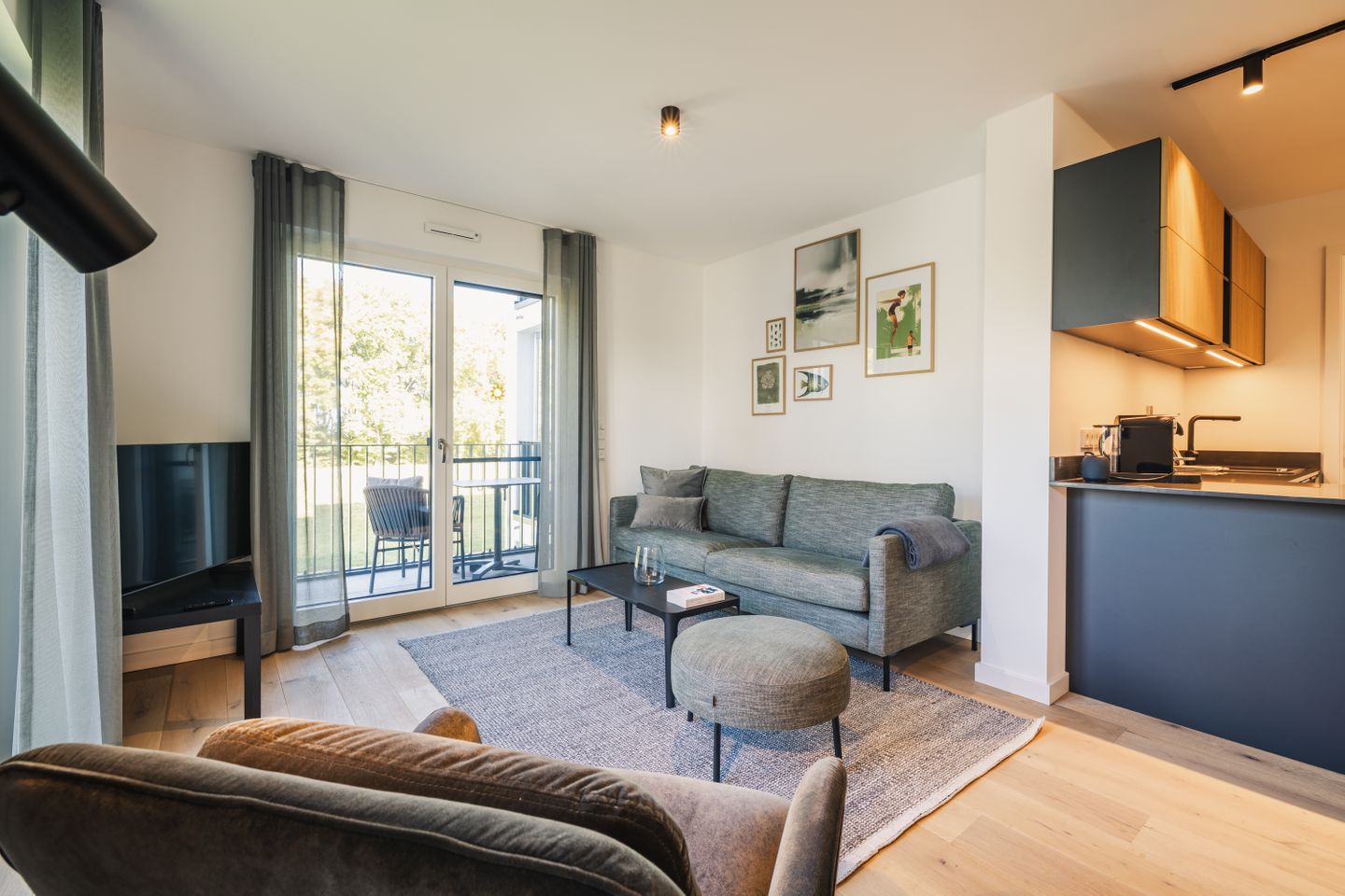 Die Nichtraucher-Unterkunft ist kinderfreundlich, allergikergeeignet und bequem per Aufzug erreichbar. Ein Schlafzimmer, ein Badezimmer sowie ein Wohn- und Essbereich schaffen ein angenehmes Raumgefühl. Parkett in Wohn- und Schlafzimmer, Fußbodenheizung und Zentralheizung unterstreichen den Wohnkomfort. Die offene Küche ist in den Wohnbereich integriert und umfassend ausgestattet: Induktionsherd, Backofen, Mikrowelle, Spülmaschine, Kühlschrank mit Gefrierfach, Wasserkocher, Toaster, Kaffeemaschine, Nespresso-Maschine sowie Küchenutensilien, Geschirr und Besteck stehen bereit.