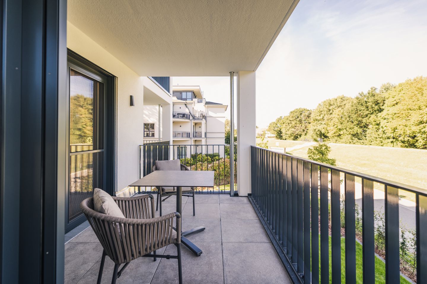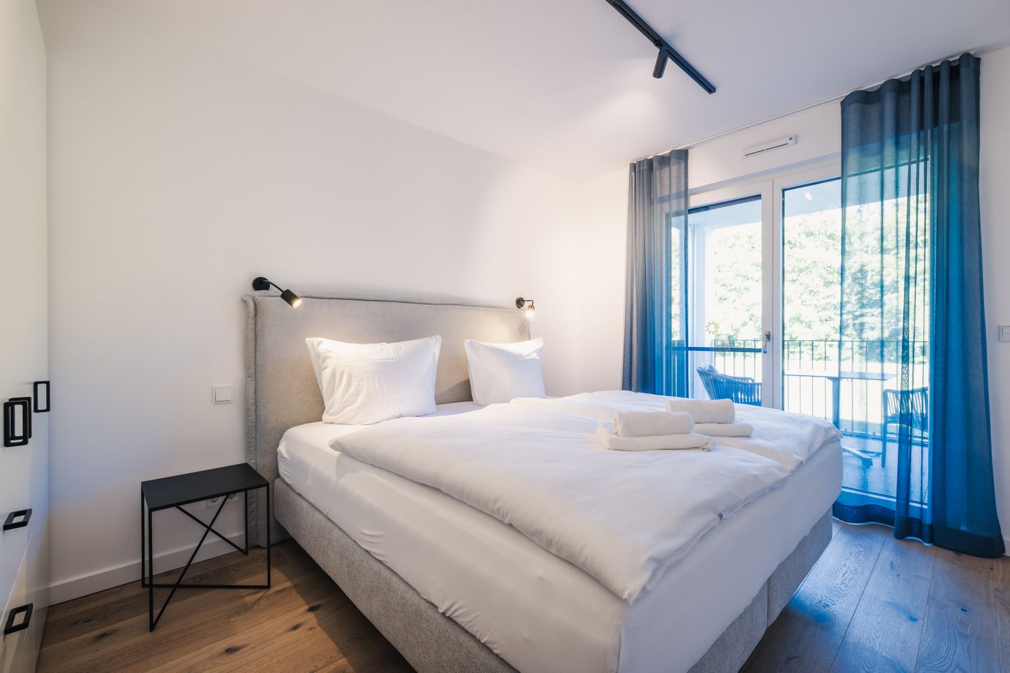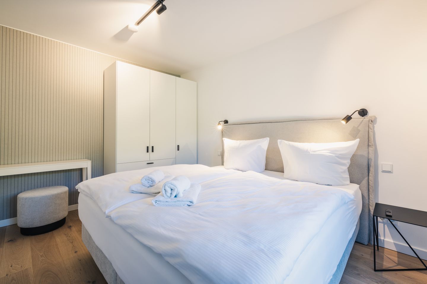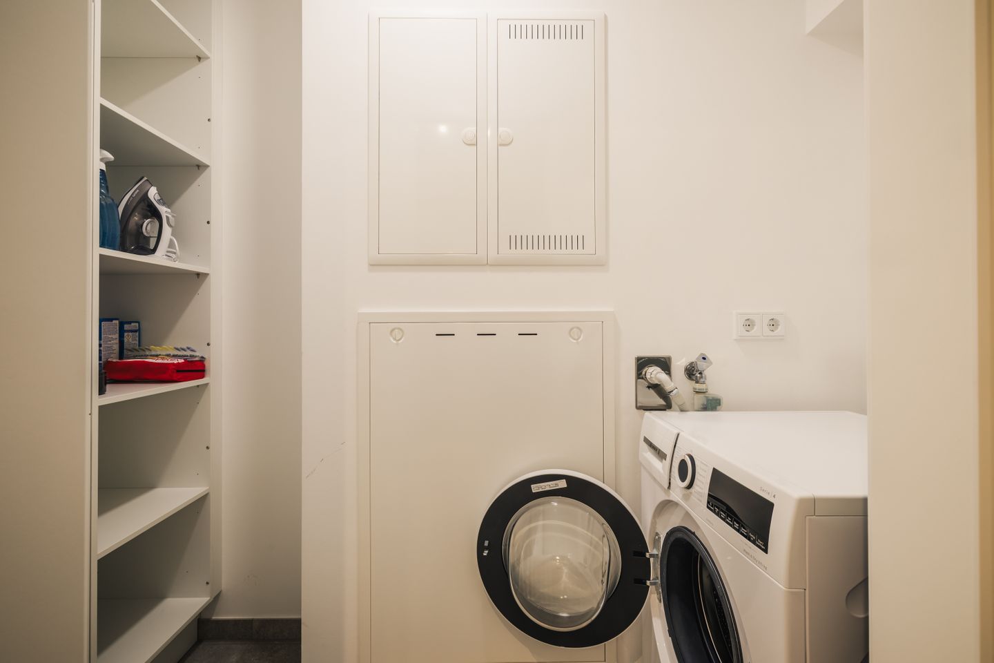 Zu den praktischen Ausstattungsmerkmalen zählen außerdem Waschmaschine und Trockner zur Eigennutzung, Bügeleisen, Bügelbrett, Garderobe, Kommode, Staubsauger, Fliegengitter sowie wichtige Sicherheitsmerkmale wie Feuermelder, Feuerlöscher und Verbandskasten. Ein Balkon mit Gartenmöbeln erweitert den Wohnraum nach außen. Für Ihre Anreise und Mobilität stehen Ihnen ein Privatparkplatz, eine Garage sowie eine E-Bike-Ladestation und eine Elektroauto-Ladestation zur Verfügung.