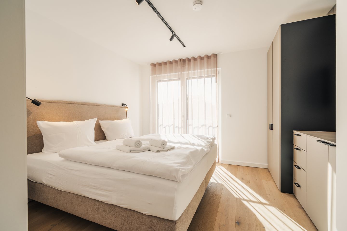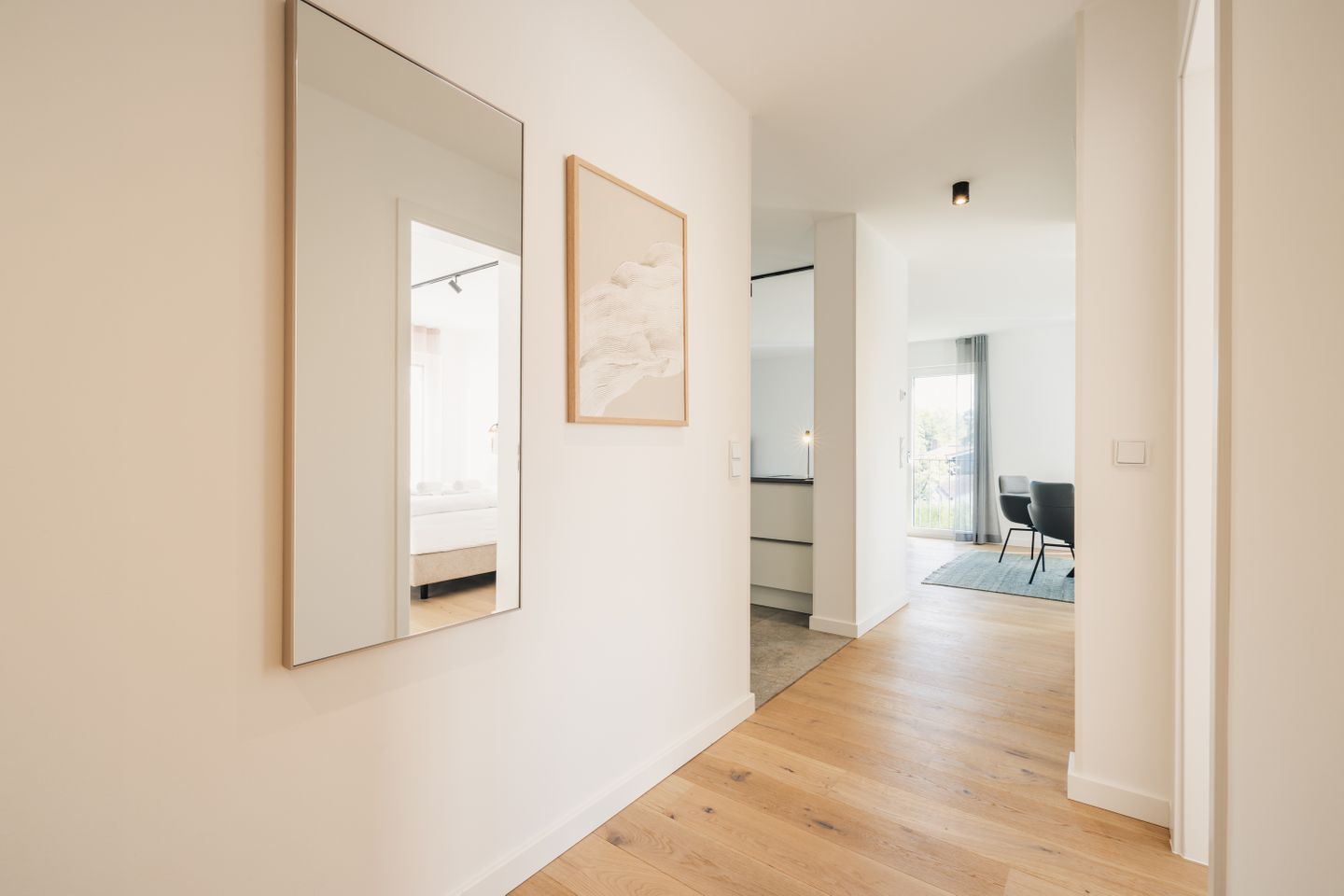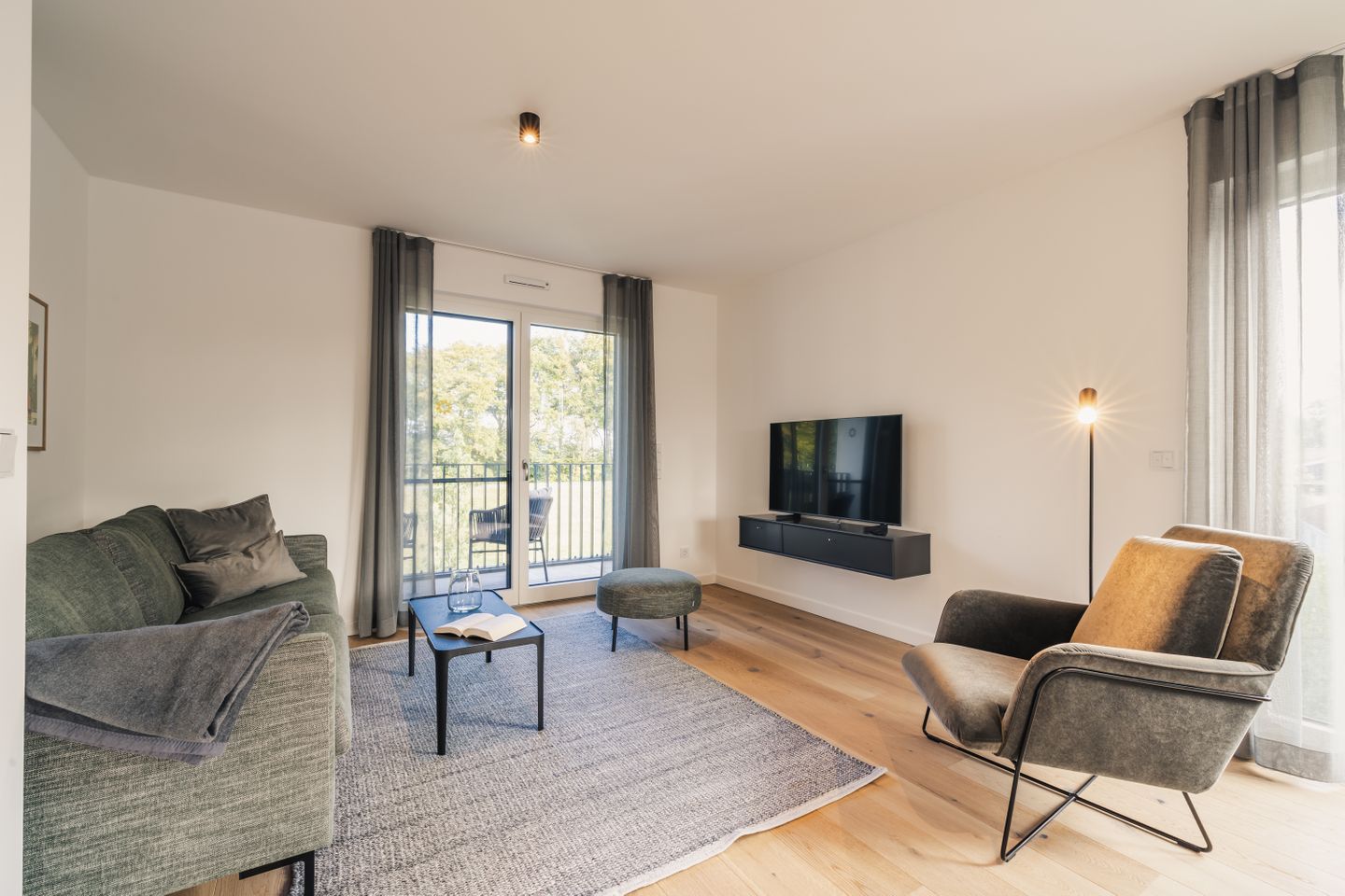 Auf 70 m² erwarten Sie 2 Zimmer mit Platz für 2 Personen. Die Wohnung verfügt über ein Schlafzimmer, ein Badezimmer sowie einen offen zum Wohnzimmer gestalteten Küchenbereich. Der Wohnbereich ist mit Sofa, Sessel, Esstisch und Sofaecke ausgestattet und schafft mit Parkettboden eine angenehme Wohnatmosphäre. Auch im Schlafzimmer sorgt Parkett für ein gepflegtes Ambiente. Zwei TVs mit Kabelanschluss stehen Ihnen zur Verfügung.