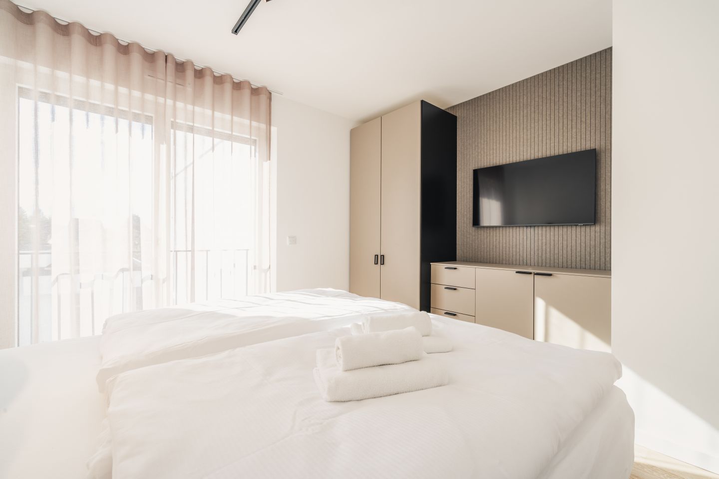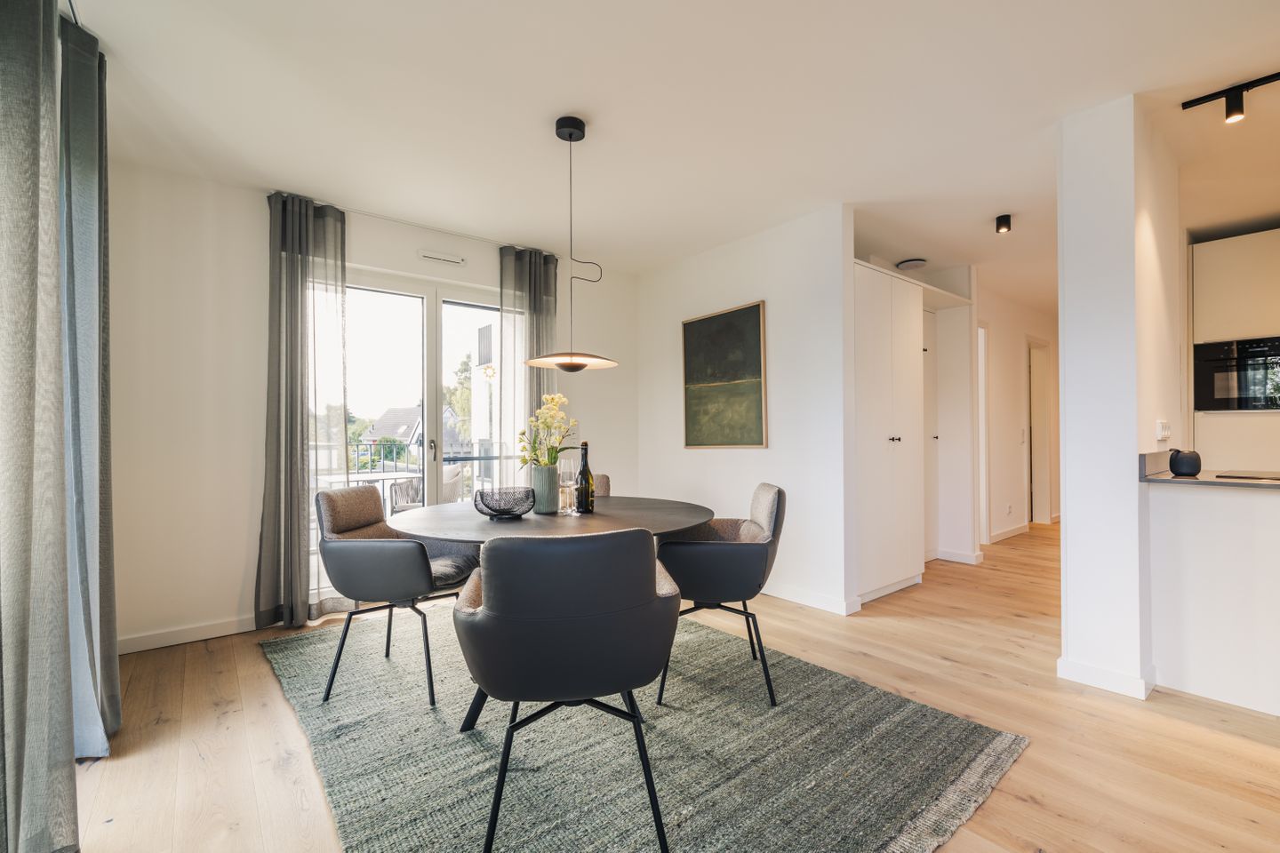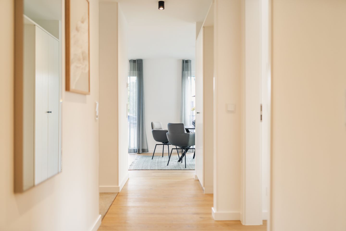 Auf 70 m² erwarten Sie 2 Zimmer mit Platz für 2 Personen. Die Wohnung verfügt über ein Schlafzimmer, ein Badezimmer sowie einen offen zum Wohnzimmer gestalteten Küchenbereich. Der Wohnbereich ist mit Sofa, Sessel, Esstisch und Sofaecke ausgestattet und schafft mit Parkettboden eine angenehme Wohnatmosphäre. Auch im Schlafzimmer sorgt Parkett für ein gepflegtes Ambiente. Zwei TVs mit Kabelanschluss stehen Ihnen zur Verfügung.