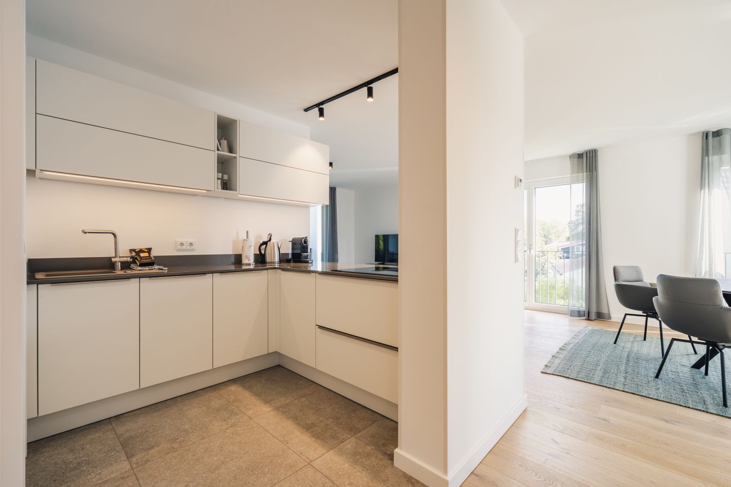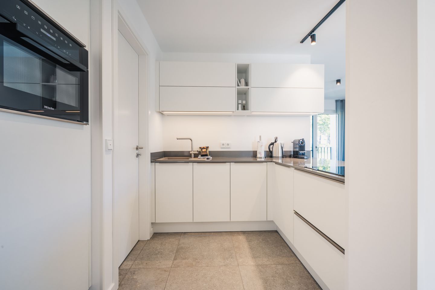 Die Küche ist funktional und umfassend ausgestattet. Dazu gehören Induktionsherd, Backofen, Mikrowelle, Spülmaschine, Kühlschrank, ein extra Gefrierschrank, Wasserkocher, Toaster, Kaffeemaschine, Nespresso-Espressomaschine sowie Geschirr, Besteck und Küchenutensilien. So können Sie Ihre Mahlzeiten bequem selbst zubereiten.