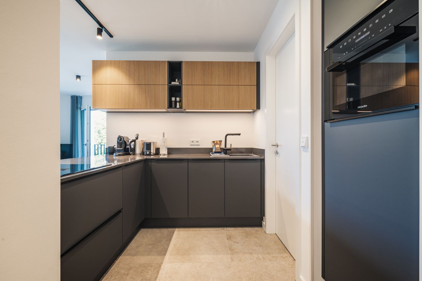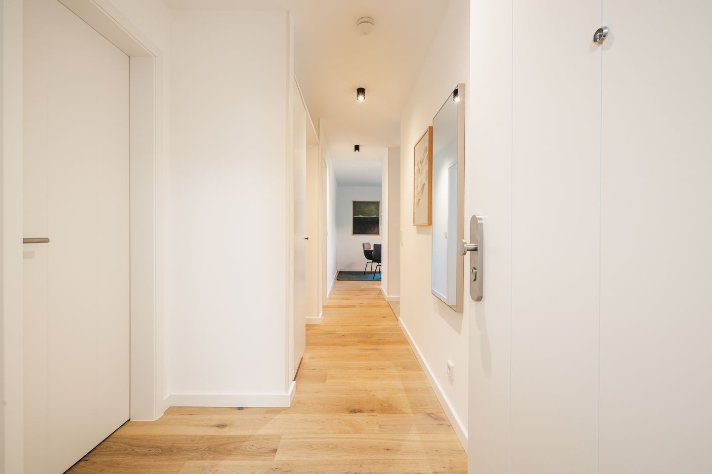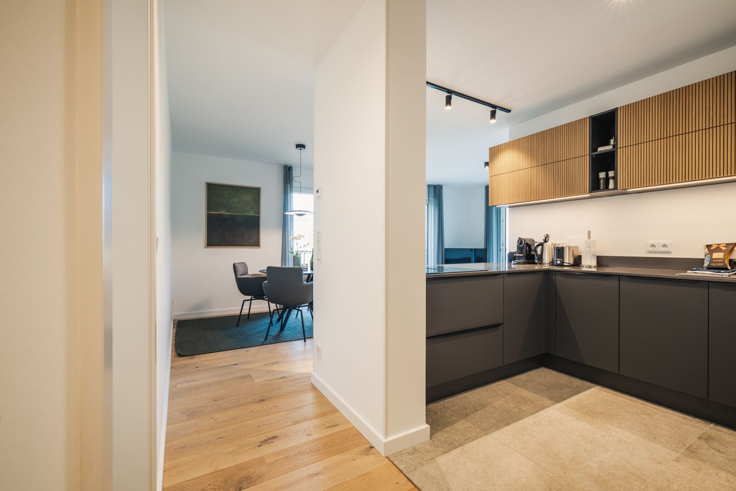Zum Apartment gehören ein überdachter Balkon mit Gartenmöbeln, ein Privatparkplatz sowie eine Garage. Ein Aufzug im Haus erleichtert den Zugang zur Wohnung. Zusätzlich stehen eine E-Bike-Ladestation und eine Elektroauto-Ladestation zur Verfügung. Für Sicherheit sorgen Feuermelder, Feuerlöscher und Verbandskasten.