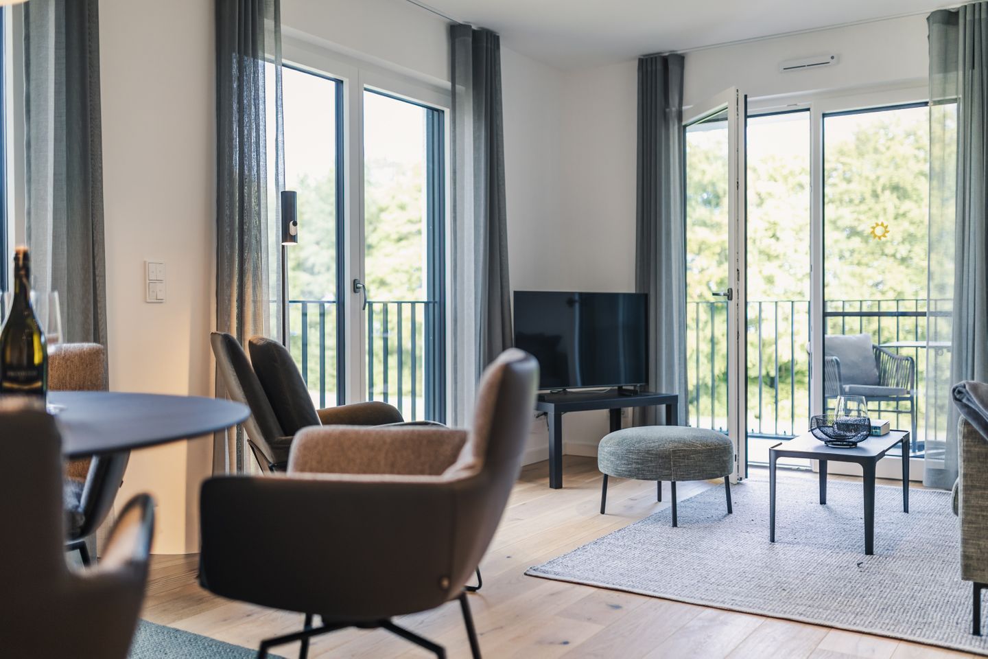 Auf 60 m² erwarten Sie 2 Zimmer mit Platz für 2 Personen. Die Unterkunft verfügt über ein Schlafzimmer, ein Badezimmer sowie einen Wohn- und Essbereich mit offener Küche. Parkettböden im Wohn- und Schlafbereich, Fußbodenheizung und Zentralheizung sorgen für ein angenehmes Wohnklima zu jeder Jahreszeit. Als Nichtraucher-Unterkunft und mit allergikerfreundlicher Ausstattung eignet sich das Apartment auch für Gäste mit entsprechenden Ansprüchen. Kinder sind willkommen; ein Babybett und ein Kinderhochstuhl stehen ebenfalls zur Verfügung.