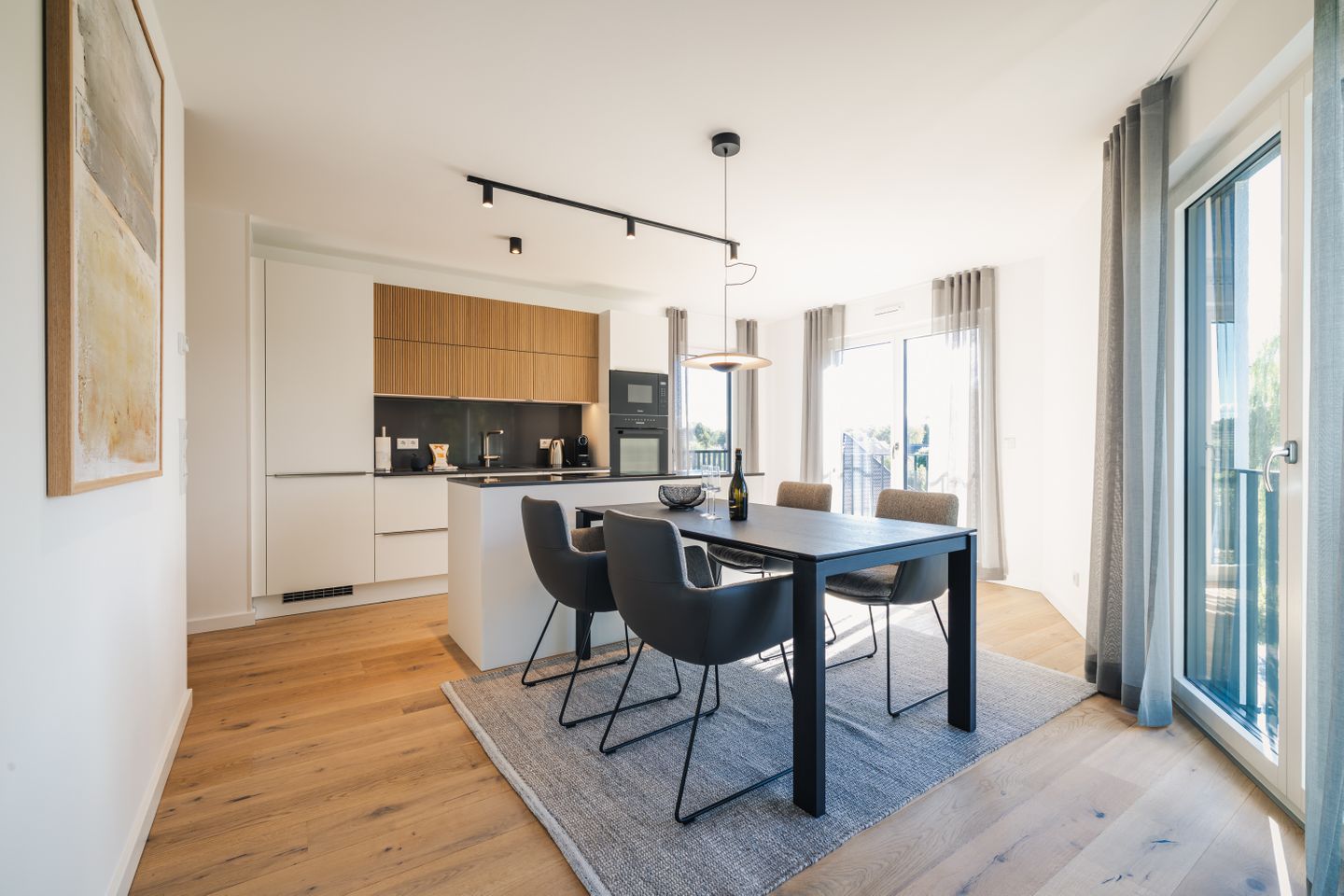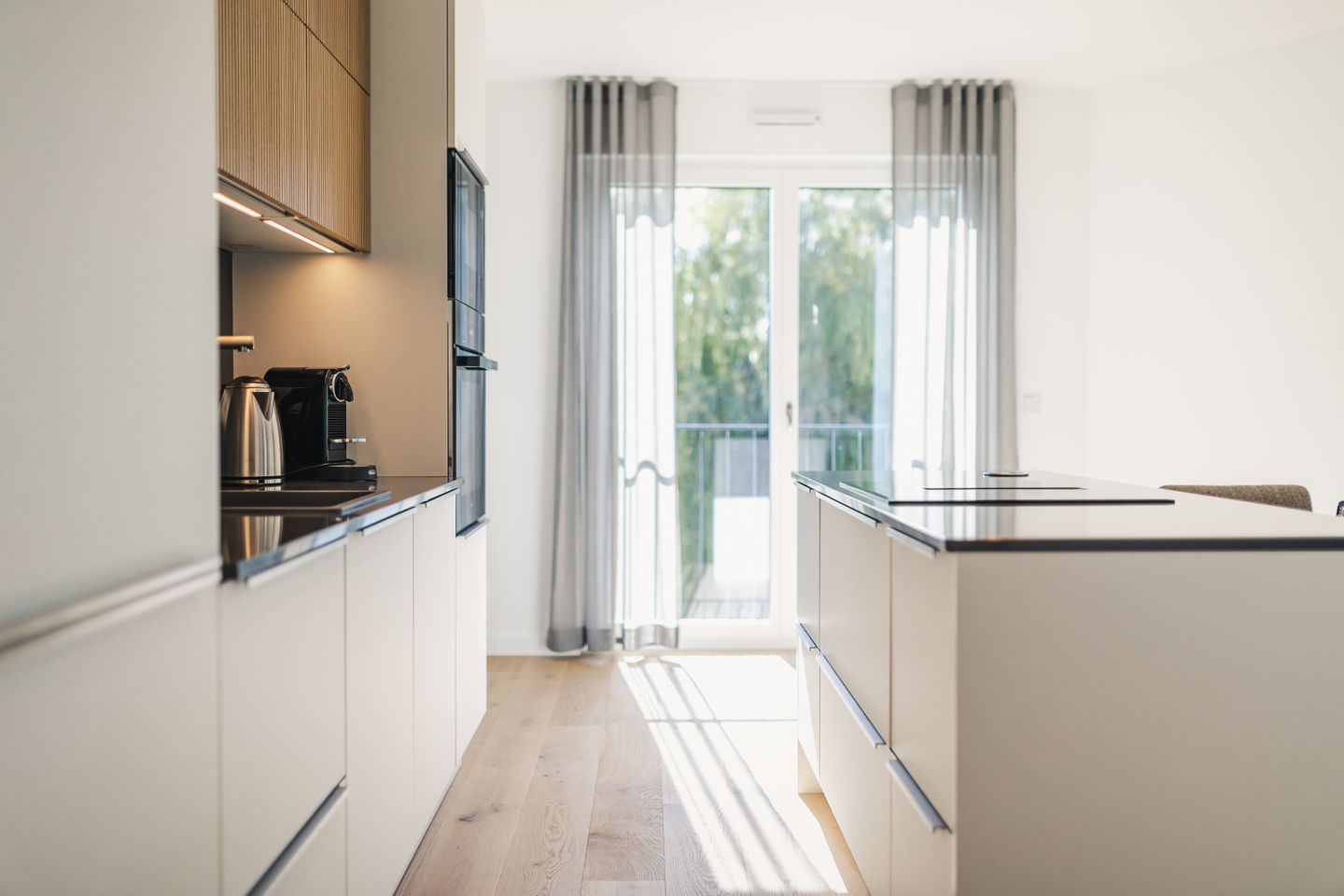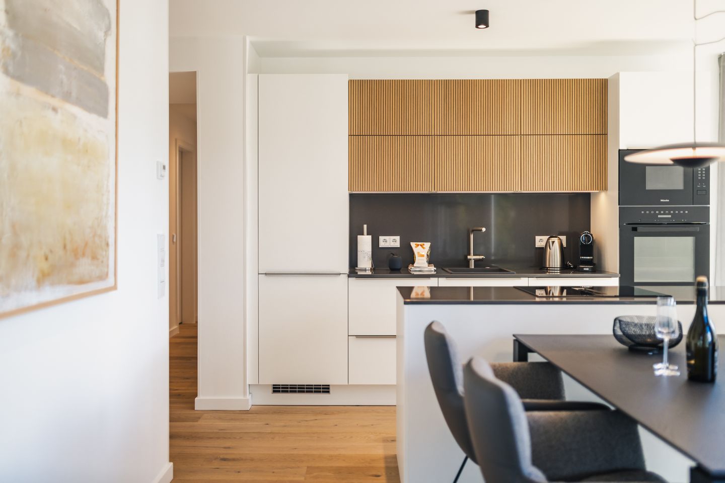 Die offene Küche ist umfassend ausgestattet und auf einen unkomplizierten Aufenthalt ausgerichtet. Sie finden hier unter anderem Kühlschrank mit Gefrierfach, Induktionsherd, Backofen, Mikrowelle, Spülmaschine, Wasserkocher, Toaster, Kaffeemaschine sowie eine Nespresso-Espressomaschine. Geschirr, Besteck und Küchenutensilien sind ebenfalls vorhanden.