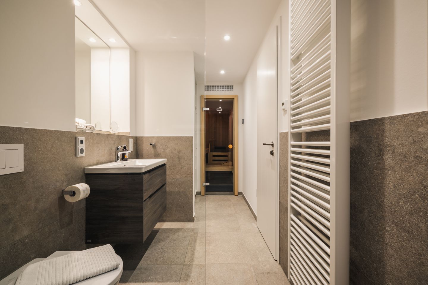 Im Badezimmer stehen Ihnen eine bodengleiche Dusche, eine Badewanne, Waschbecken, WC, Spiegel, Kosmetikspiegel und Haartrockner zur Verfügung. Besonders angenehm ist die Sauna zur Eigennutzung, die den Wellnesscharakter der Unterkunft unterstreicht. Zusätzlich können Waschmaschine und Trockner in Eigennutzung verwendet werden. Bügeleisen, Bügelbrett, Staubsauger, Garderobe und weitere praktische Ausstattungsmerkmale erleichtern auch längere Aufenthalte. Für Familien mit Kind sind ein Babybett und ein Kinderhochstuhl vorhanden, Kinder sind willkommen.